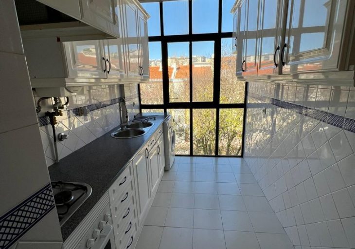 Trata-se de um T1 remodelado com 65 m2, num terceiro andar sem elevador, cozinha pré-equipada, sala com lareira, quarto com roupeiro e varanda.